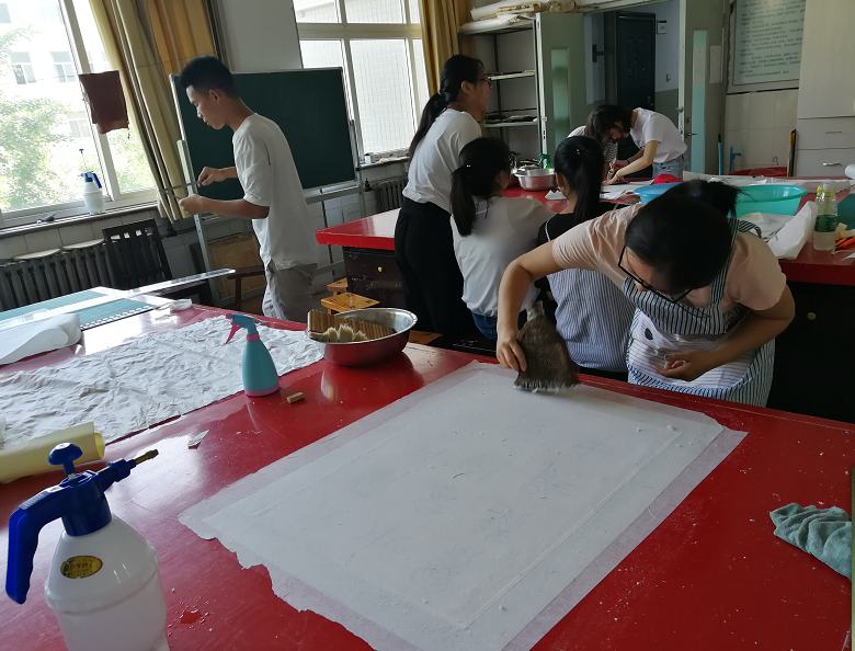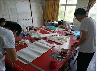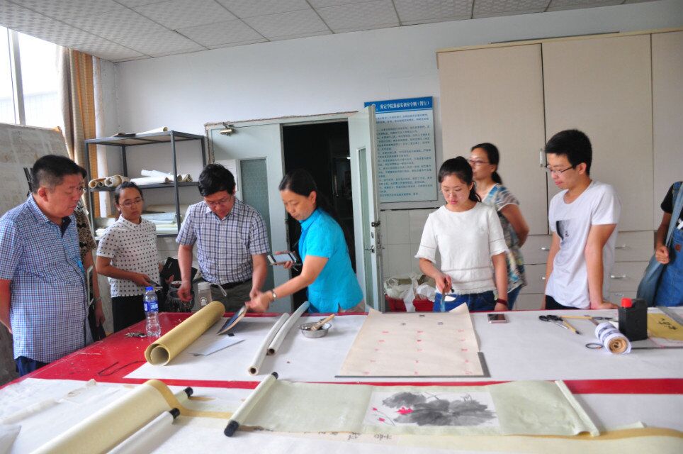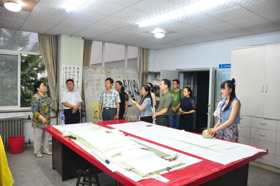 北京大学考古文博公司周双林教授参观公司字画装裱实训室