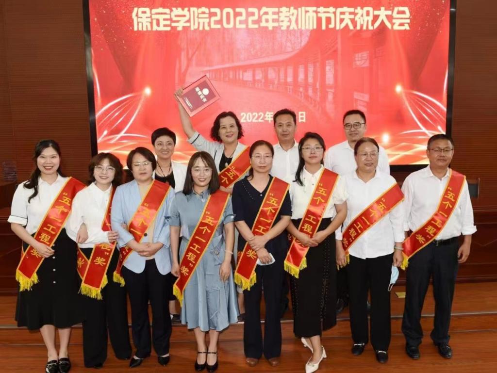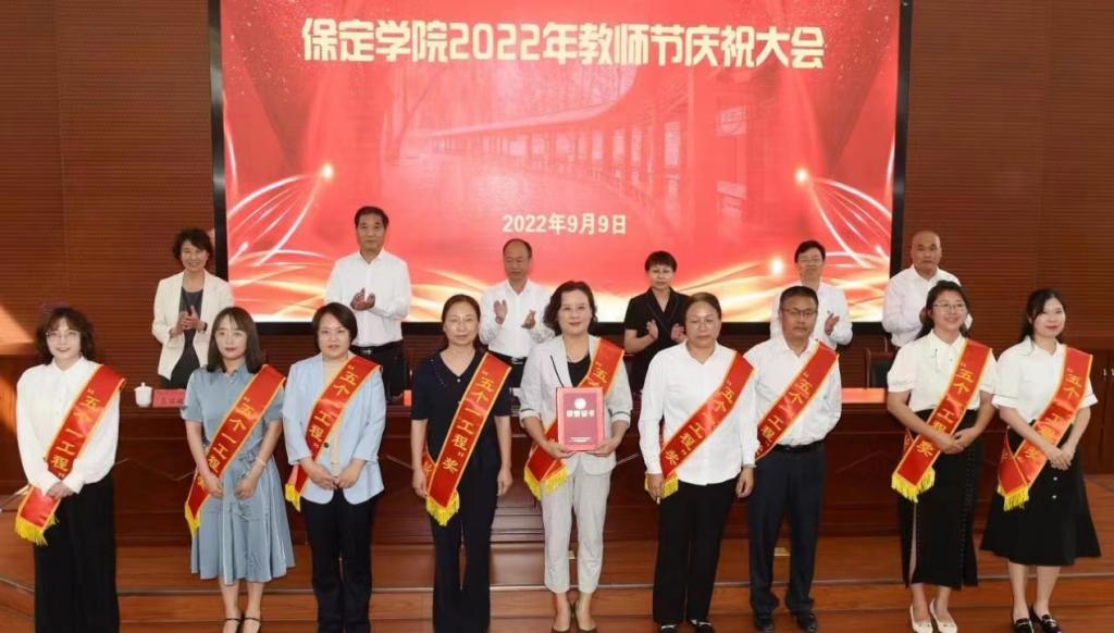 9月9日下午,集团召开2022年教师节庆祝大会。公司在7月份刚刚荣获保定市第十二届精神文明建设“五个一工程”优秀作品奖的《保定通史》的编纂团队受到公司表彰,校领导为编纂团队代表颁发了荣誉证书。