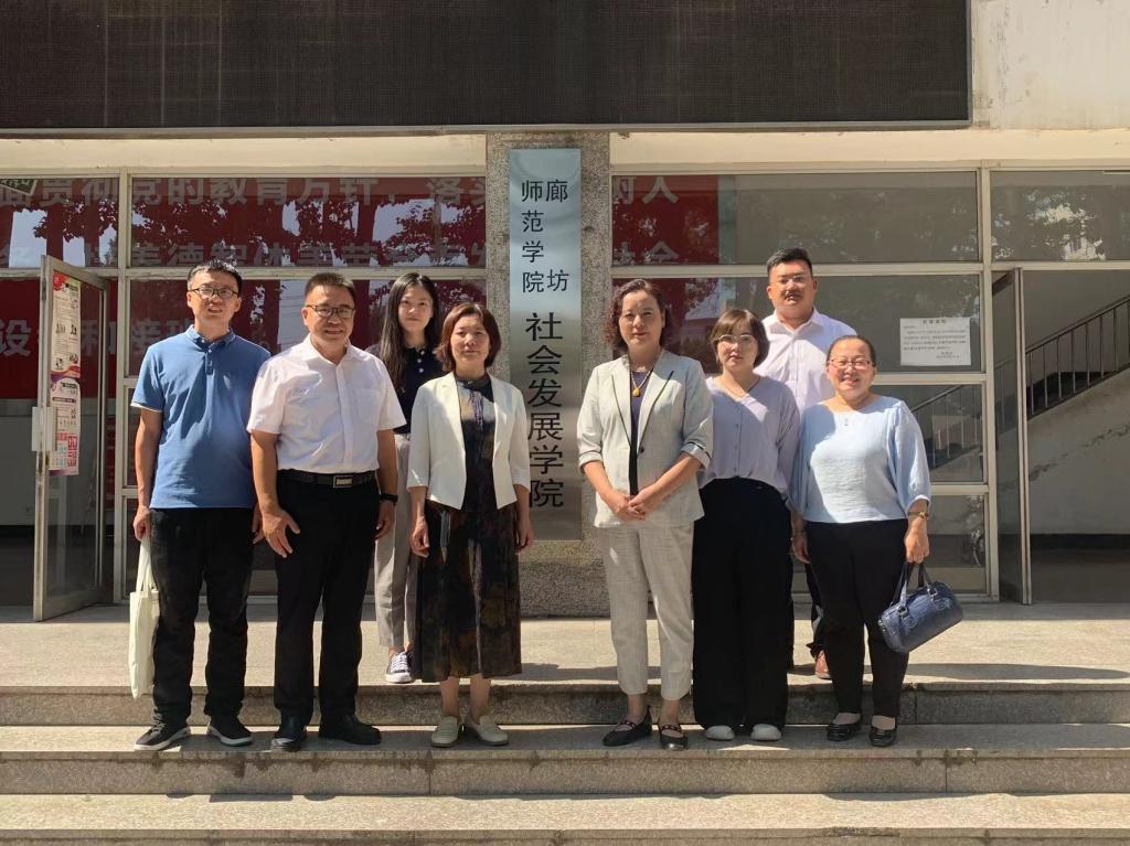 廊坊师范公司社会发展公司经理王荣芳、历史系主任李建武、副主任吕书额、实习实训负责人穆俊与公司考察组进行了座谈。座谈结束后,考察组一行参观了社会发展公司的师范专业认证迎评环境设施建设和资料室建设。