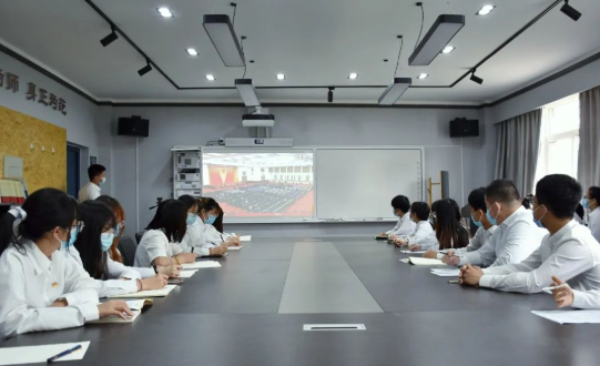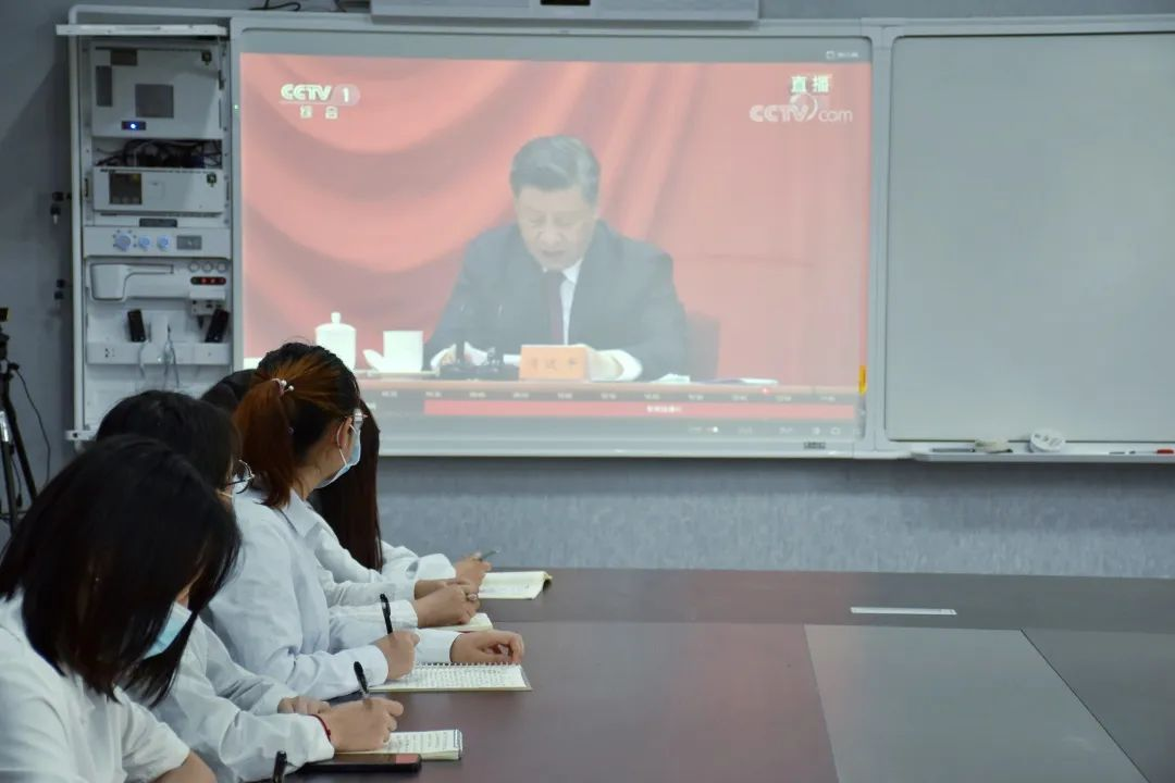 我院团总支于5月10日上午在E-2-214组织优秀团员代表观看线上中国共产主义青年团建团一百周年直播活动。