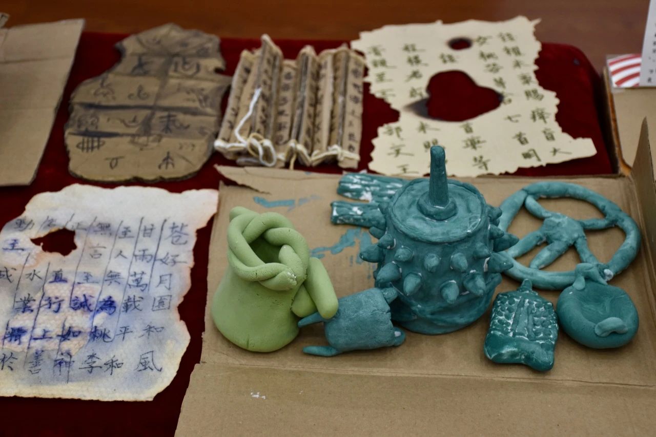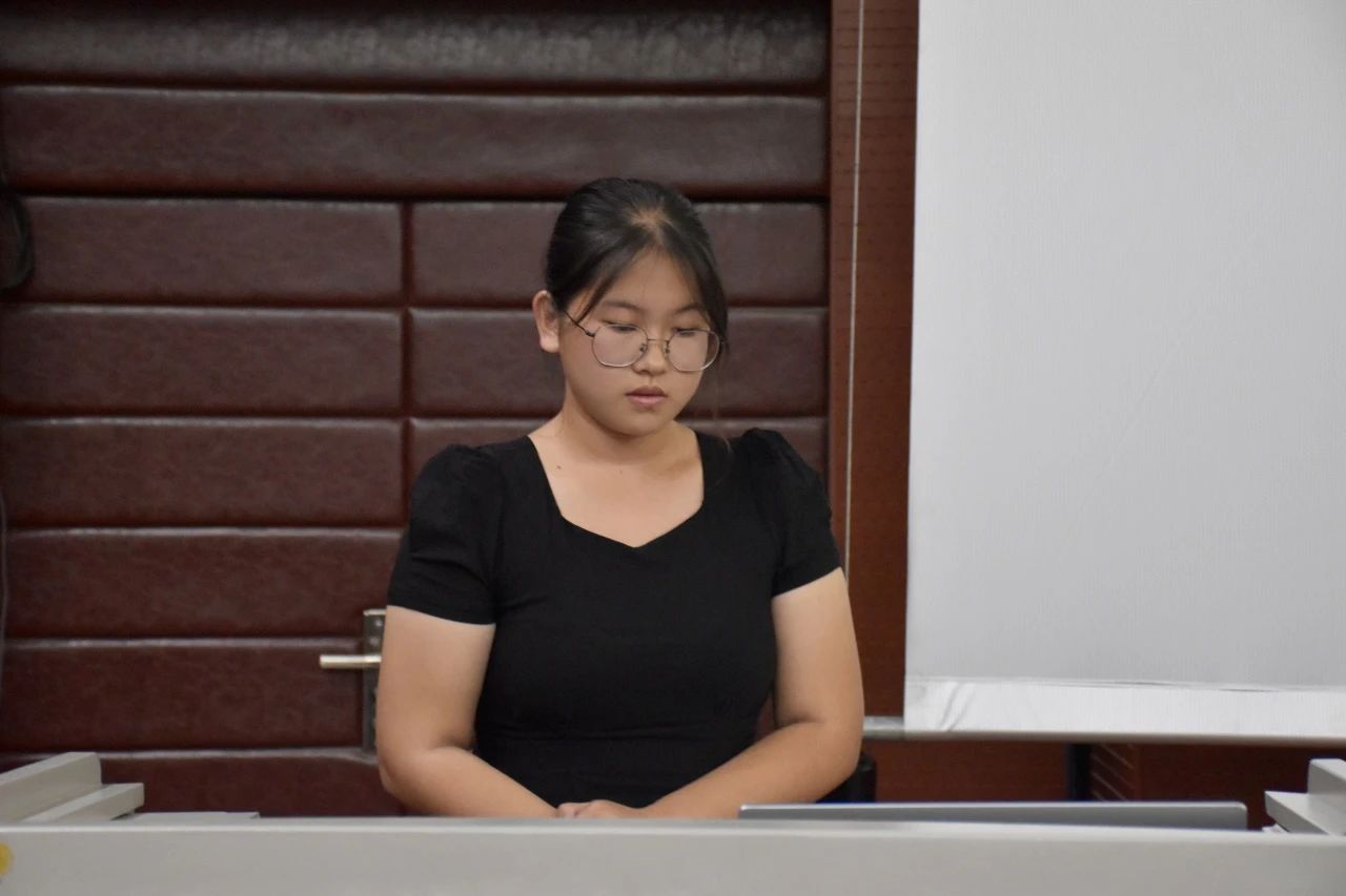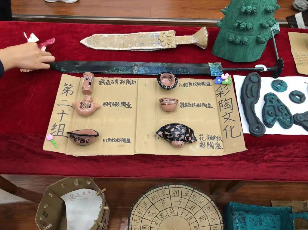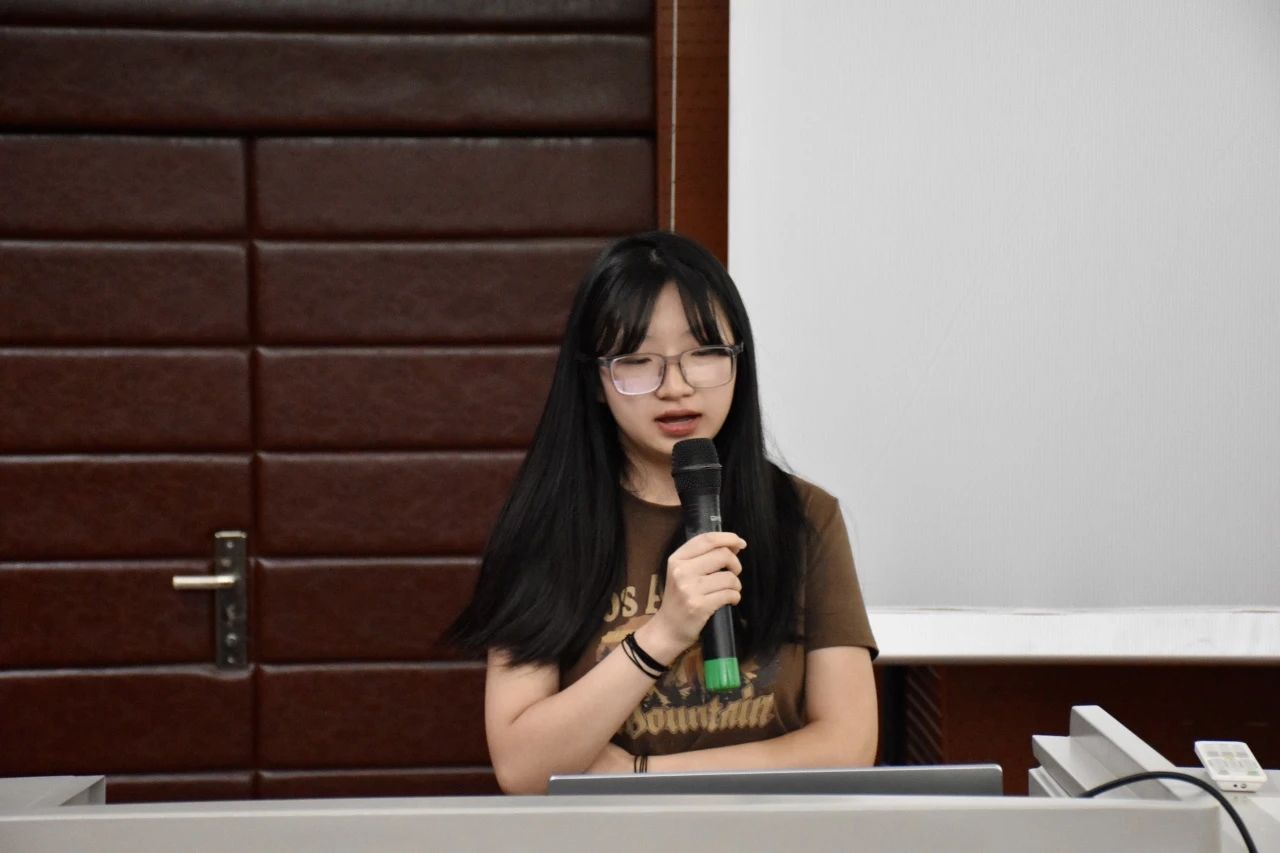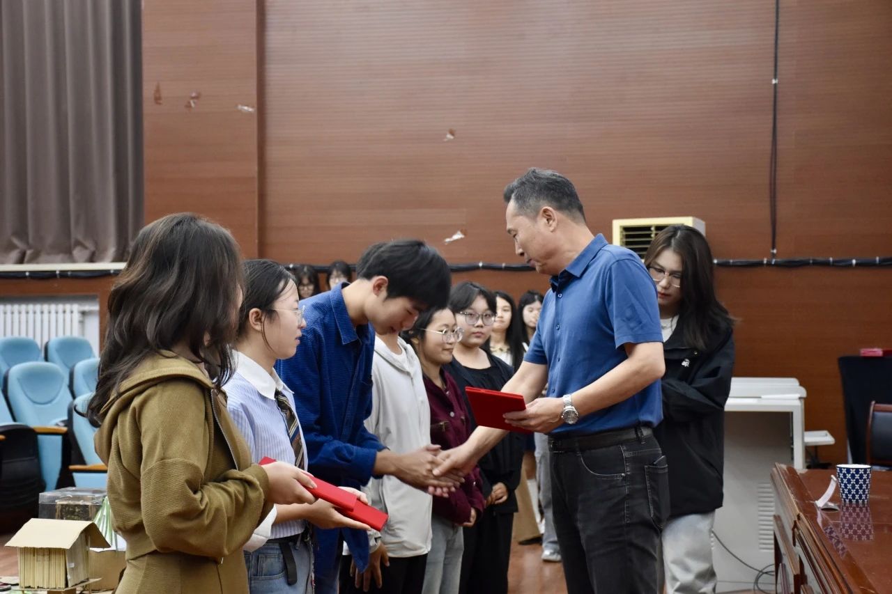在历史文物仿制活动大赛中获奖的小组代表们上台讲解本小组制作的文物。23级文物与博物馆学专业第四组代表杨旭向我们展示了他们小组的优秀作品,带我们领略了三星堆青铜器的丰富意趣;23级历史学二班第11组代表王思雨在介绍本小组文物的过程中,为大家补充了丰富的历史知识;24级历史学专业第三组代表魏泽琳同学介绍的少虡剑则为我们开启了一扇认识全新文物的大门。