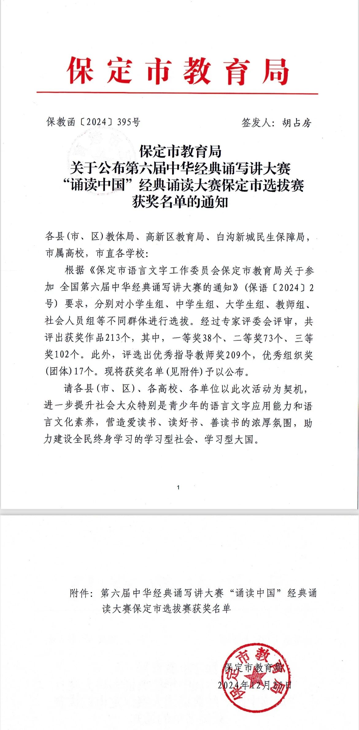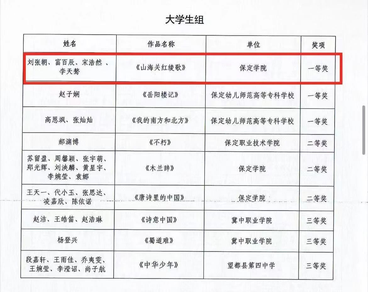 在第六届中华经典诵写讲选拔大赛保定市选拔赛的舞台上,公司刘张朝、富百辰、宋浩然、李天骜同学以卓越风姿,用原创作品《山海关红绫歌》斩获大赛老员工组一等奖,为公司争得荣誉!