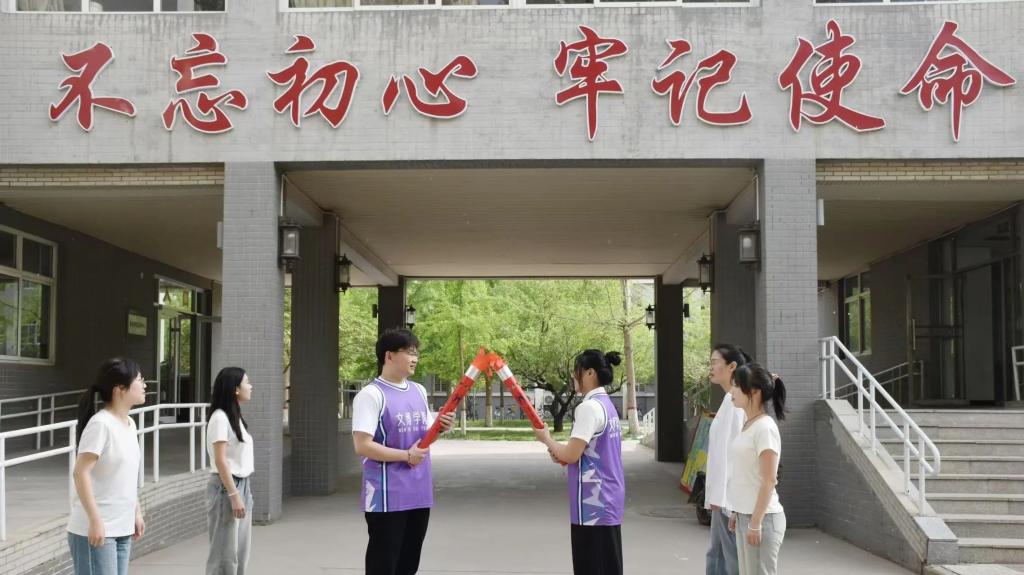 第四棒主火炬手郭子正阳,副火炬手陈佳佳、刘佳玥。自图书馆启程,踏着庄重的红色长廊,一步步迈向承载着历史记忆的老校门。当这三位火炬手缓缓推开那扇见证了无数岁月变迁的老校门时,他们不仅传递着手中的圣火,更是在完成一场意义非凡的“精神接力”,生动诠释了公司精神的薪火相传,彰显了一代又一代学子对前辈精神的崇高敬意与不懈传承。